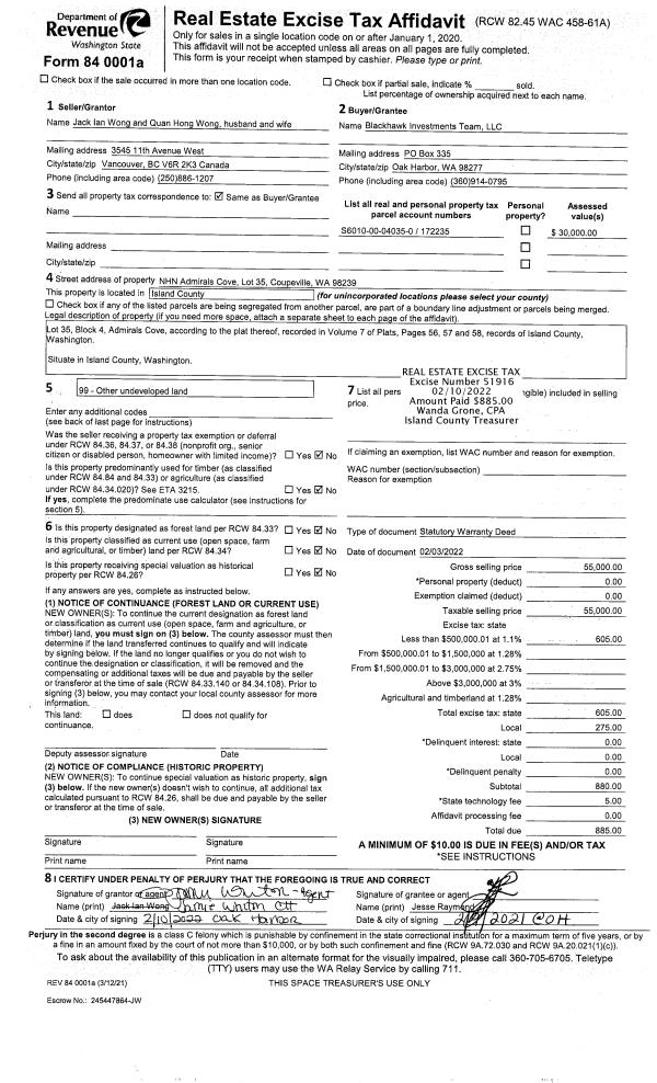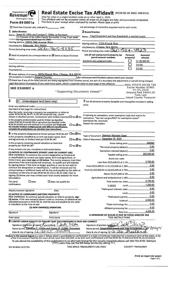 | Mailing Address: | KATHLEEN DAVIS 701 S MAIN ST TRLR 33 COUPEVILLE, WA 98239 | % Ownership: | 100.0000000000% |
