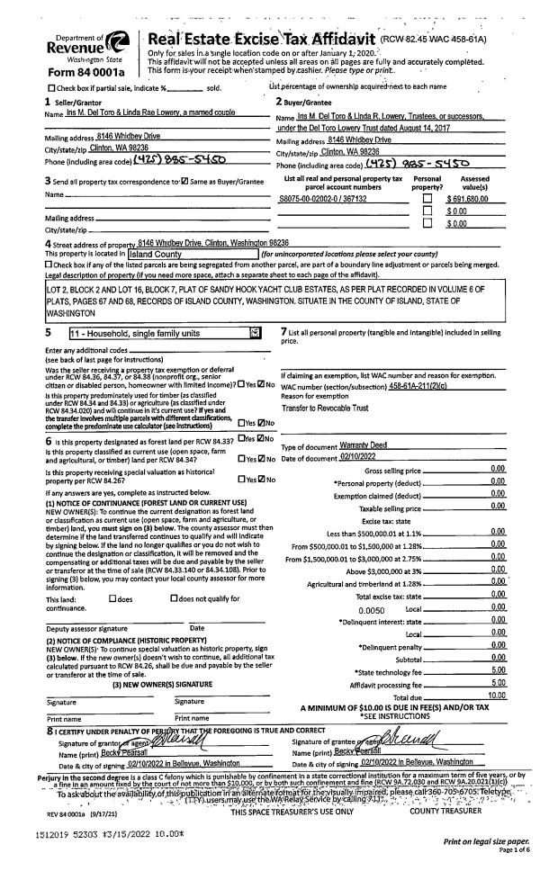 | 4 | 10/01/1984 | WD | Warranty Deed | IVERSON, EDWARD | IVERSON, EDWARD K | | | $0.00 | 43272 | 84005430 |