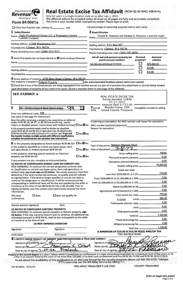| 1 | 88 | DESIGNATED FOREST | 7.2800 | 317116.80 | 0.00 | 0.00 | 1.00 | $72,800 | $1,354 |
