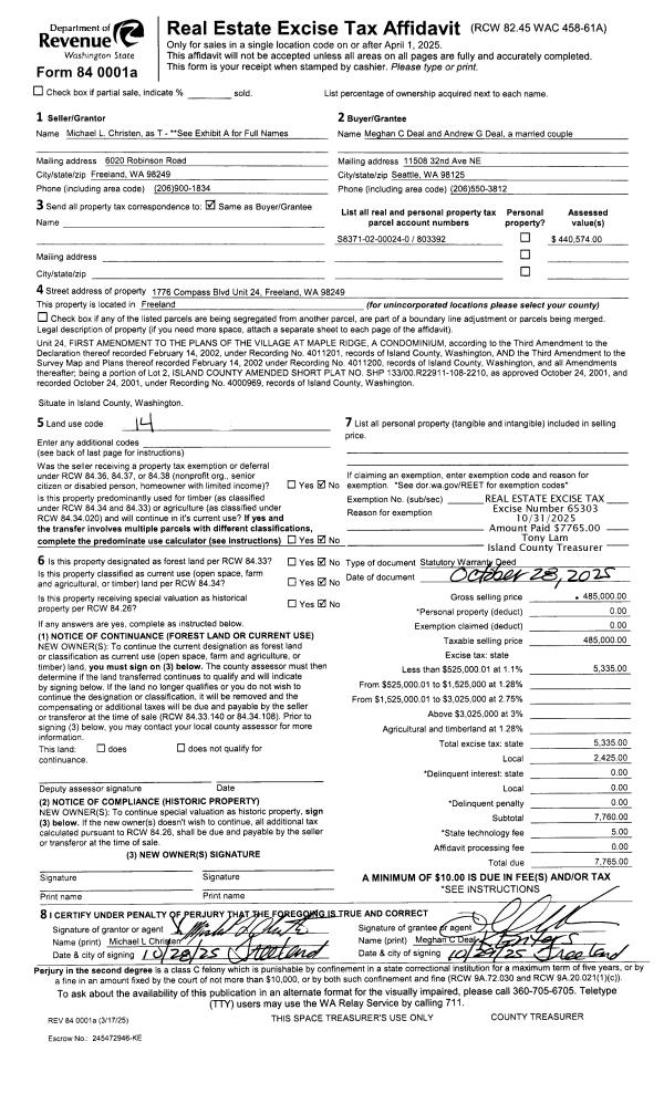 | 1 | 12/15/2016 | TTAXD | Treasurer's Tax Deed | ISLAND COUNTY TREASURER | SIMPSON, PAUL L. | | | $4,150.00 | 27344 | 4413389 |