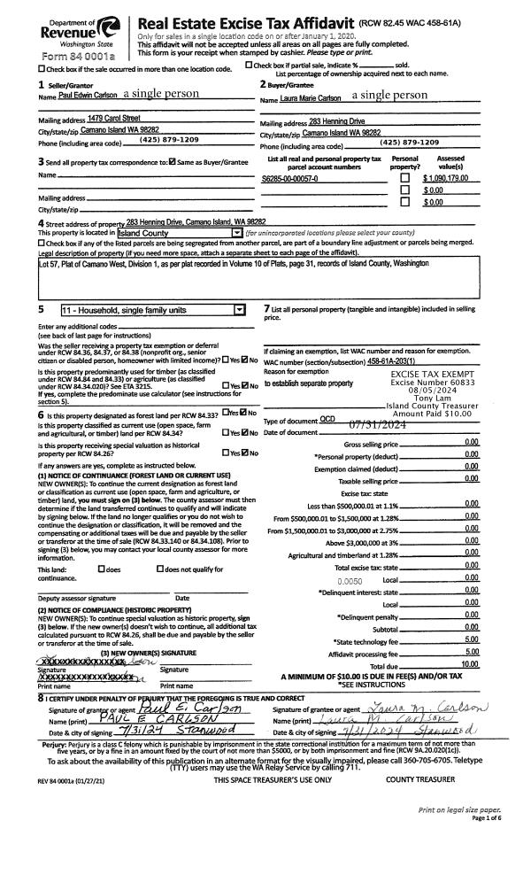 | Mailing Address: | VICTORIA L MERRILL 1055 NE TAFTSON ST OAK HARBOR, WA 98277-4855 | % Ownership: | 100.0000000000% |