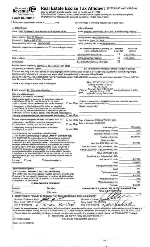 | Mailing Address: | 1956 NE 11TH AVE OAK HARBOR, WA 98277 | % Ownership: | 100.0000000000% |