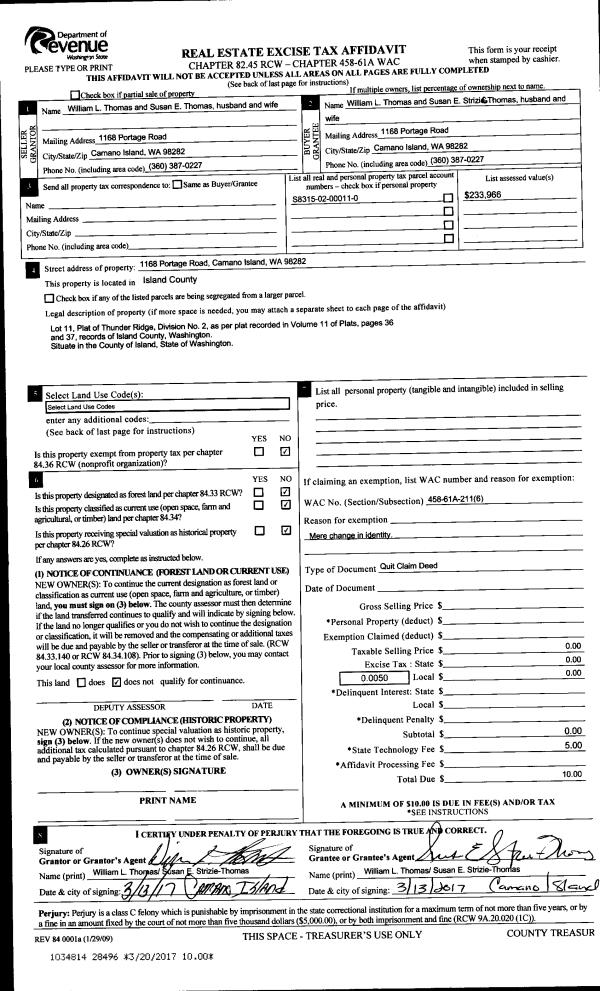 | Mailing Address: | 700TH NW CROSBY AVE TRLR#A186 OAK HARBOR, WA 98277 | % Ownership: | 100.0000000000% |