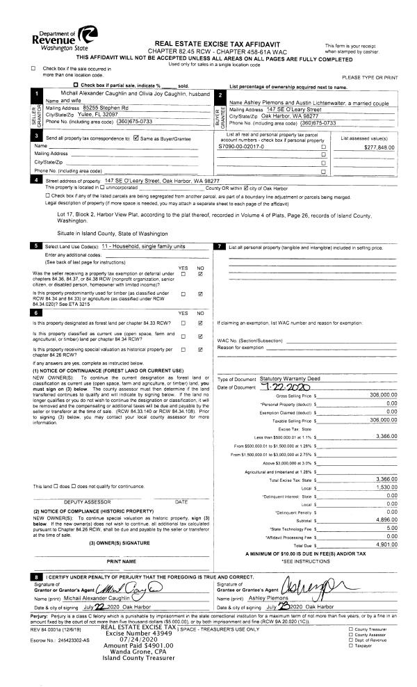 | 5 | 09/15/2005 | WD | Warranty Deed | STROM, JACK F | PAC NW HOMES LLC, | | | $59,500.00 | 54893 | 4149231 |