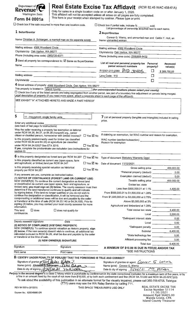 | Mailing Address: | GREGORY J MORRIS 8126 LOPEZ DR CLINTON, WA 98236 | % Ownership: | 100.0000000000% |