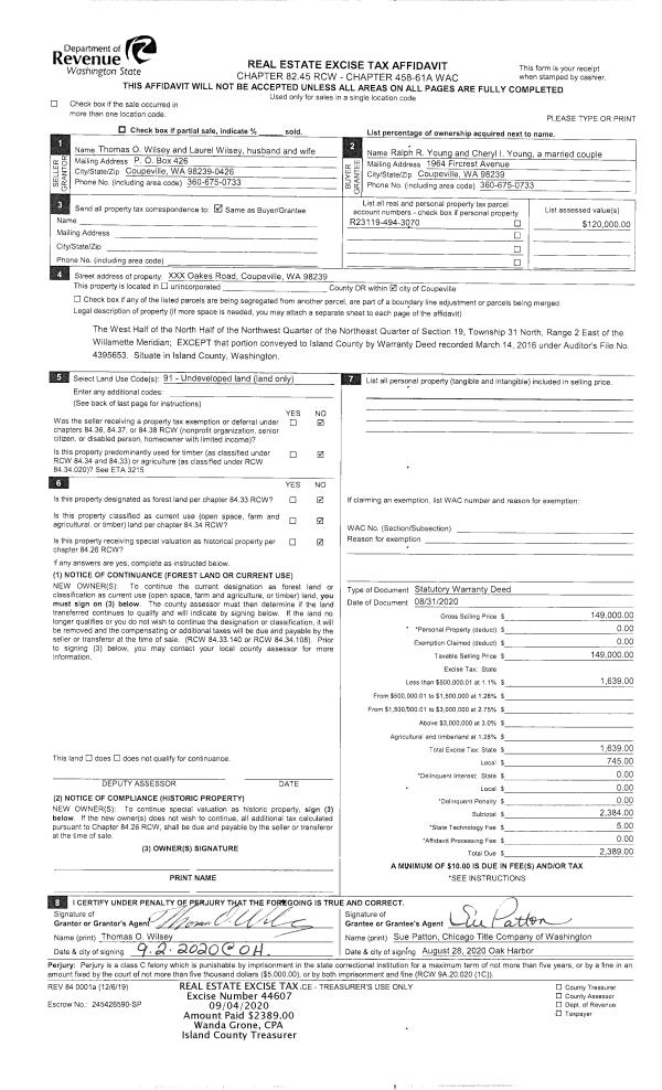 | Mailing Address: | DENISE A MORRIS 8126 LOPEZ DR CLINTON, WA 98236 | % Ownership: | 100.0000000000% |