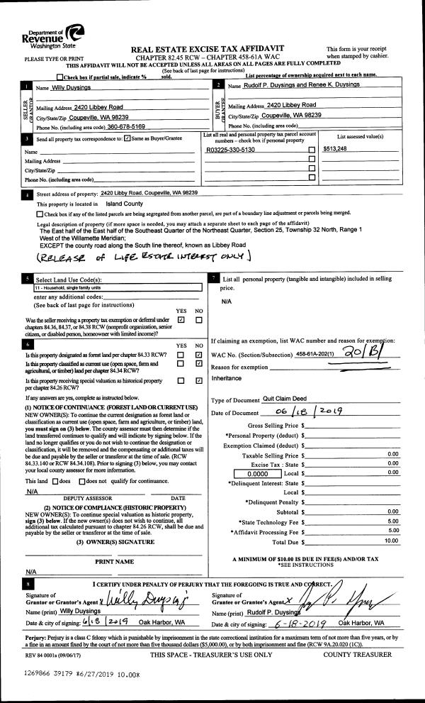| Mailing Address: | 34938 SR20 #74 OAK HARBOR, WA 98277 | % Ownership: | 100.0000000000% |