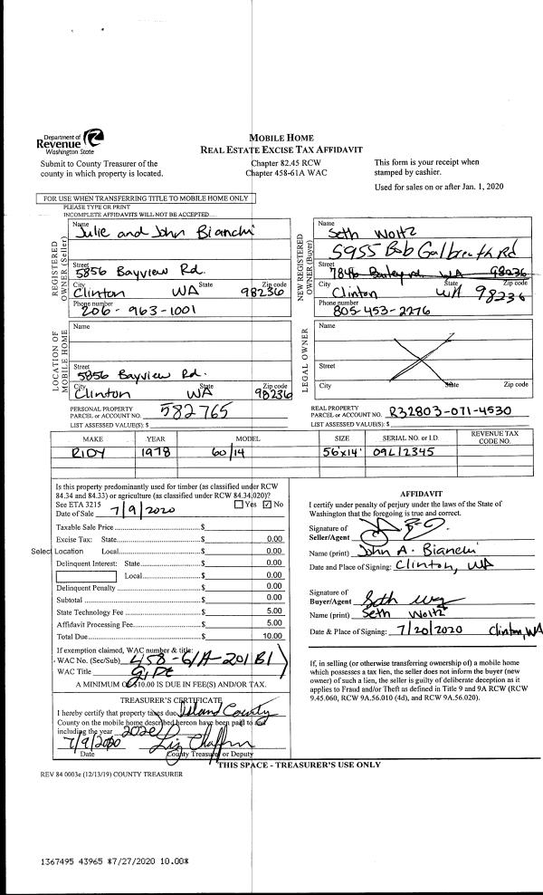 | 1 | 12/24/2019 | QCD | Quit Claim Deed | WHIDBEY TELEPHONE CO | BAYVIEW STORAGE FACILITY, LLC | | | $0.00 | 41623 | 4478292 |