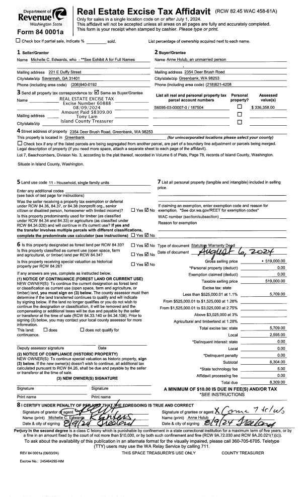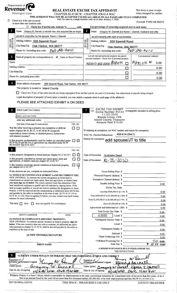 | Mailing Address: | VIVIANA ORTEGA 1450 SW ISLANDER LN OAK HARBOR, WA 98277 | % Ownership: | 100.0000000000% |