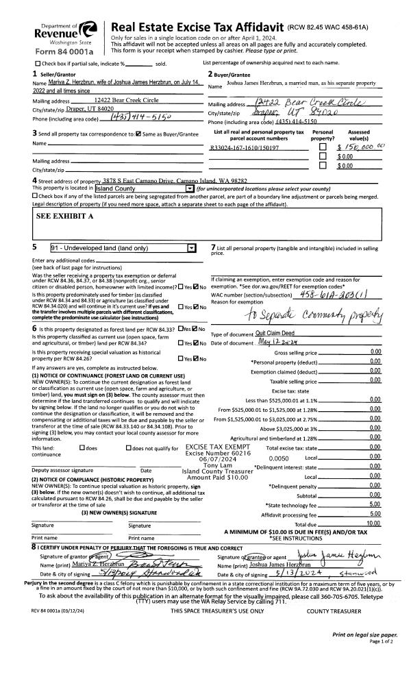 | Mailing Address: | 1665 NW 2ND AVE OAK HARBOR, WA 98277 | % Ownership: | 100.0000000000% |