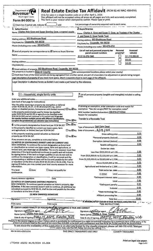 | Mailing Address: | 1634 NW 2ND AVE OAK HARBOR, WA 98277 | % Ownership: | 100.0000000000% |