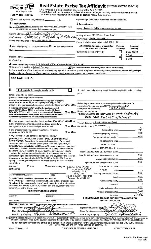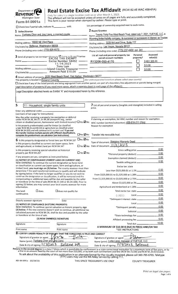 | Mailing Address: | TERESA KENWORTHY 399 SE FISHER CT OAK HARBOR, WA 98277 | % Ownership: | 100.0000000000% |