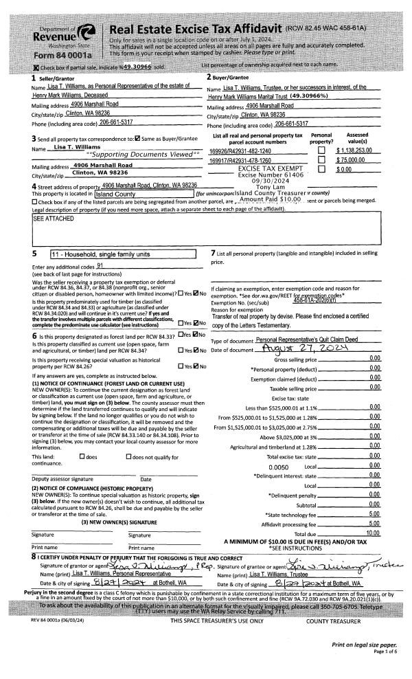 | Mailing Address: | IVONNE R DEAVER 233 SE FISHER CT OAK HARBOR, WA 98277-5511 | % Ownership: | 100.0000000000% |