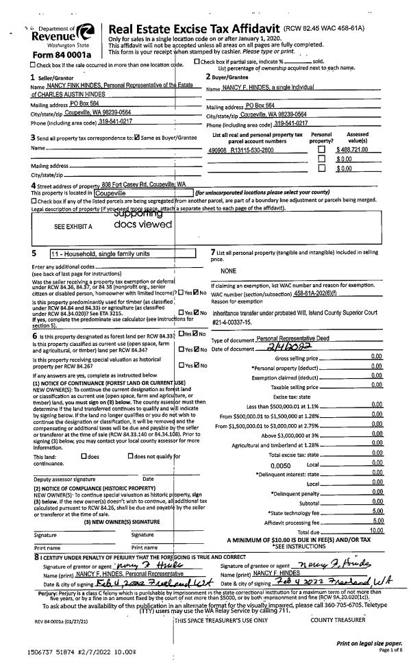 | 4 | 10/19/1999 | PRD | Personal Representatives Deed | LANDER, ROY | LANDER, CHARMIAN M | | | $0.00 | 94465 | 99024342 |