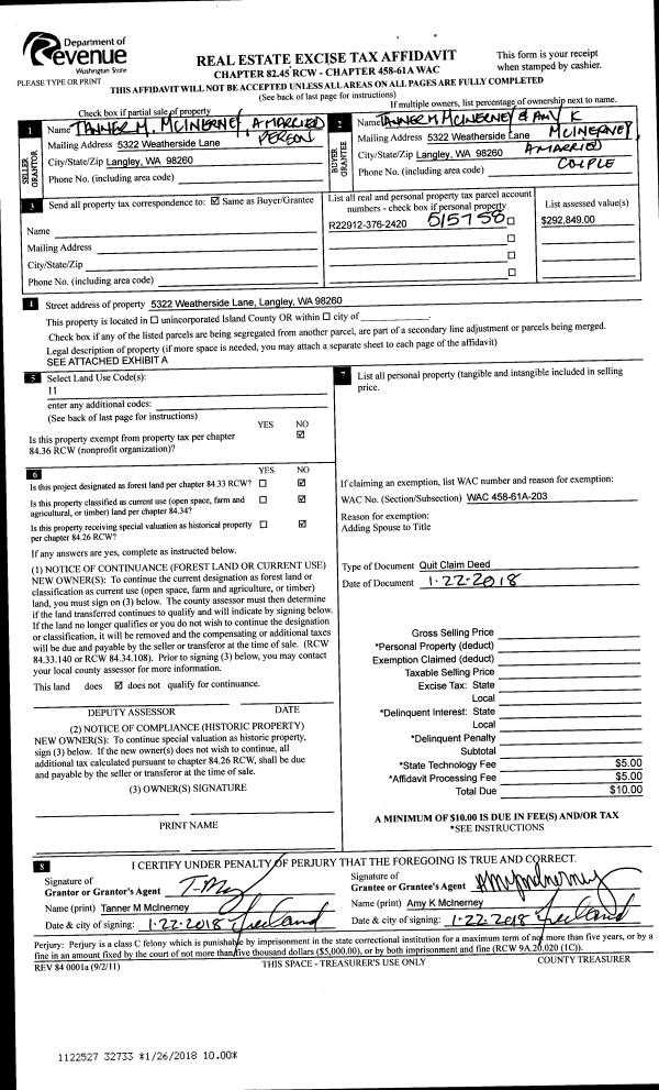| Mailing Address: | 371 BOE RD OAK HARBOR, WA 98277 | % Ownership: | 100.0000000000% |