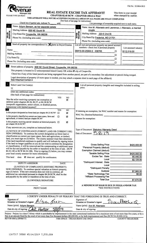 | Mailing Address: | TRELLA J. WITT TTEE 6506 HEGGENES RD CLINTON, WA 98236 | % Ownership: | 100.0000000000% |