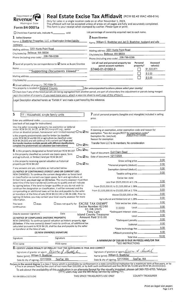 | Mailing Address: | 30901 STATE ROUTE 20 #D1 OAK HARBOR, WA 98277 | % Ownership: | 100.0000000000% |