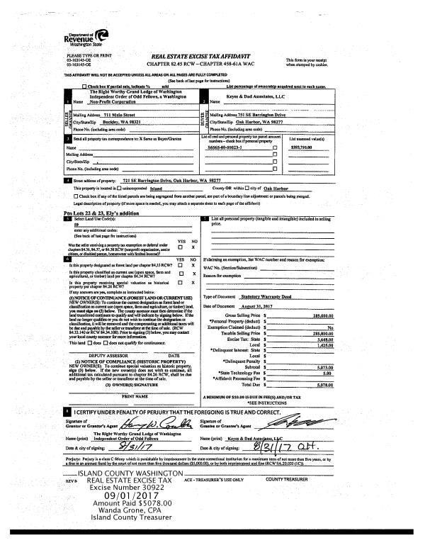 | Mailing Address: | 219 FORT CASEY RD COUPEVILLE, WA 98239 | % Ownership: | 100.0000000000% |