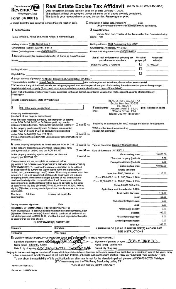 | Mailing Address: | BARBARA K DOUMA TTEE 2920 EAGLKE BLUFF RD GREENBANK, WA 98253 | % Ownership: | 100.0000000000% |