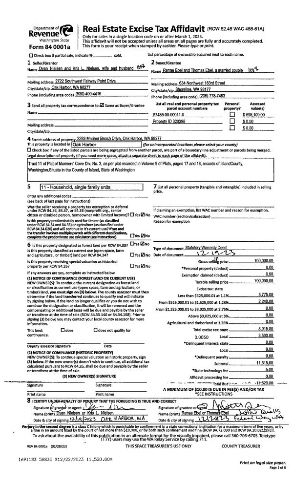 | 1 | 05/30/2023 | EZ | Easement | FLACK, KYLE | WHIDBEY CAMANO LAND TRUST | | | $0.00 | 56875 | 4560536 |