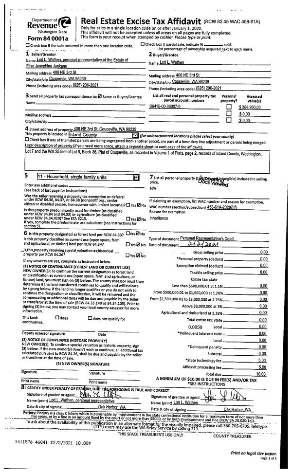 | 1 | 10/13/2020 | WD | Warranty Deed | REGENCY COUPEVILLE PROPERTIES I, LLC | WHIDBEY ISLAND PUBLIC HOSPITAL DISTRICT | | | $725,000.00 | 45209 | 4499260 |