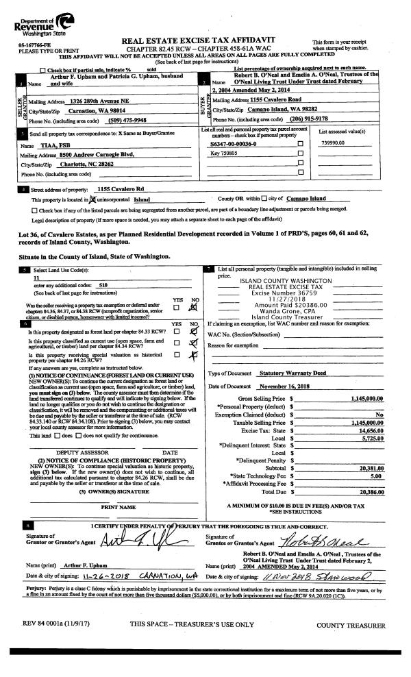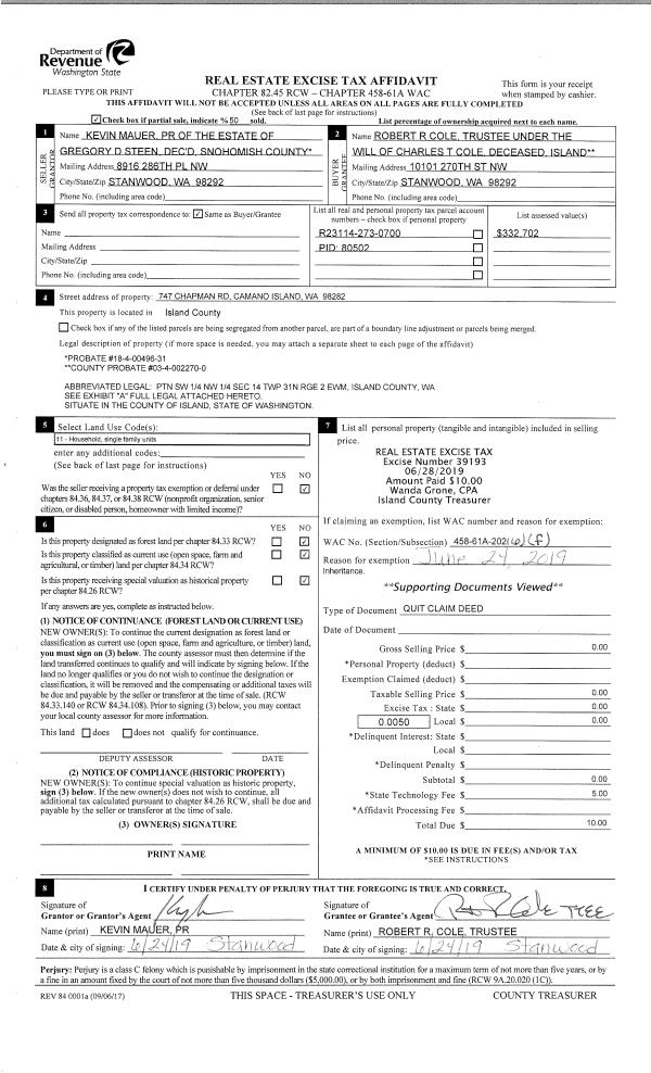 | Mailing Address: | EDWARD R FAKKEMA SHARON E FAKKEMA 2494 LIBBEY RD COUPEVILLE, WA 98239 | % Ownership: | 100.0000000000% |