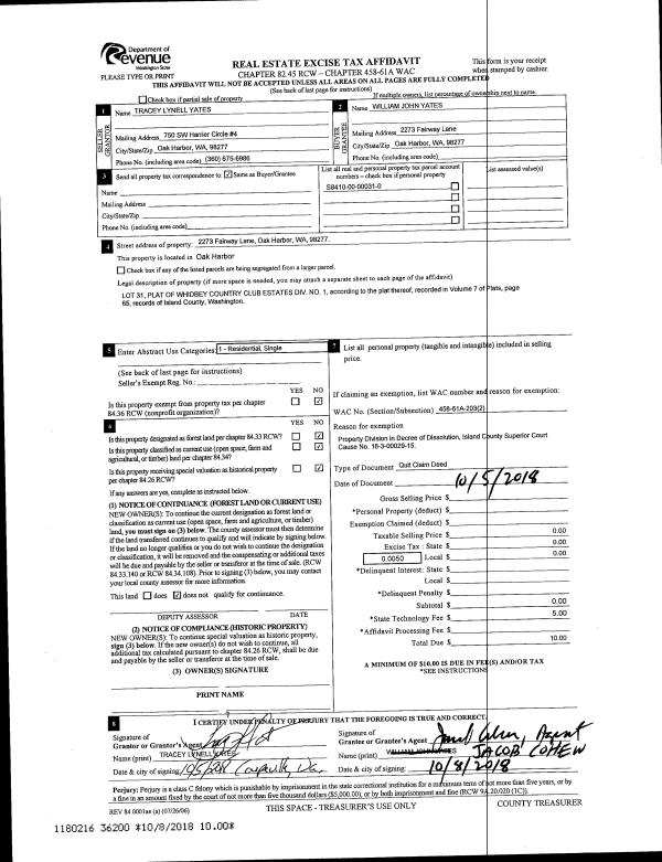 | Mailing Address: | 6843 OLD WAGON RD CLINTON, WA 98236 | % Ownership: | 100.0000000000% |