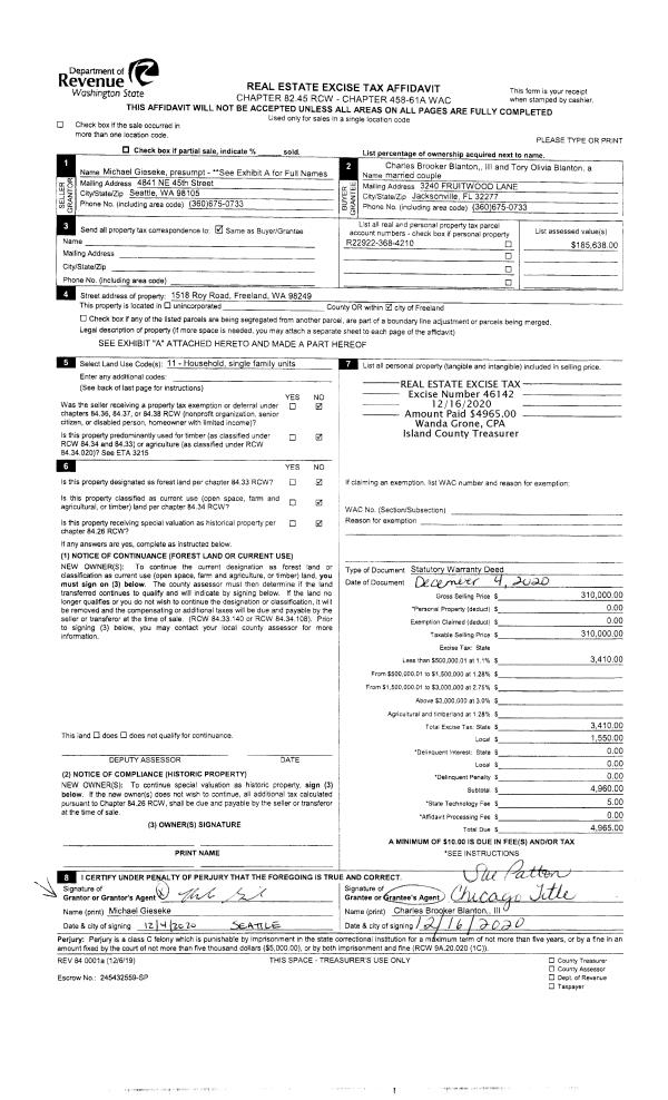 | Mailing Address: | 673 SCANDIA PARKWAY CAMANO ISLAND, WA 98282 | % Ownership: | 100.0000000000% |