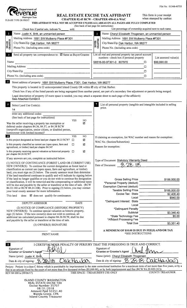 | Mailing Address: | 3238 MABANA RD CAMANO ISLAND, WA 98282 | % Ownership: | 100.0000000000% |