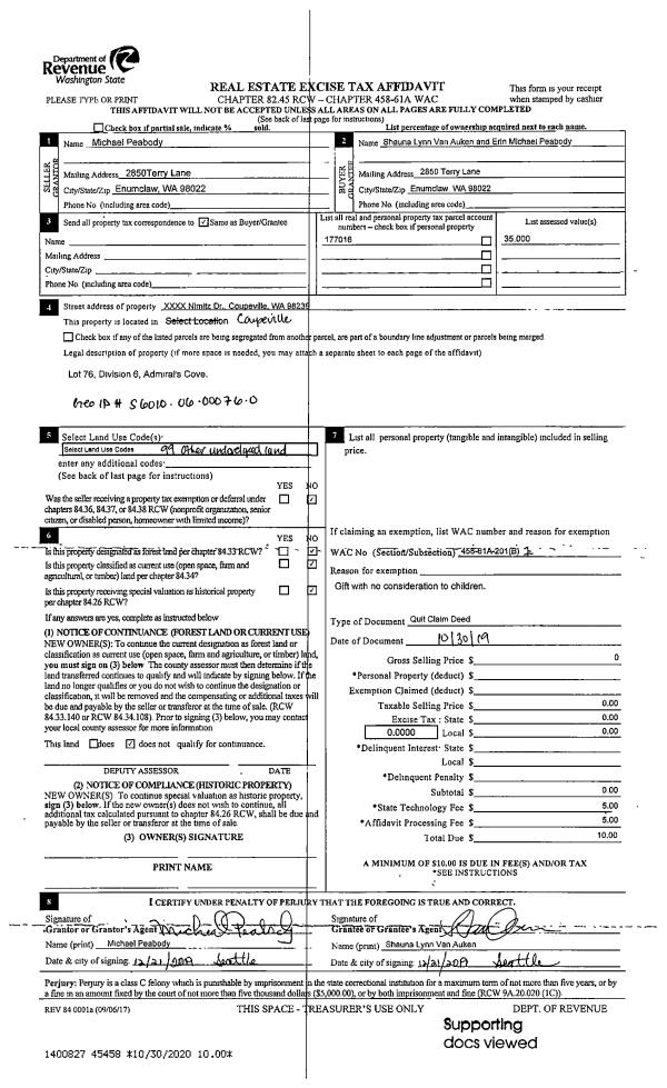 | 4 | 10/01/1986 | QCD | Quit Claim Deed | MICKELSON, SCOTT W | WHIDBEY, ISLAND B | | | $0.00 | 62789 | 86012597 |