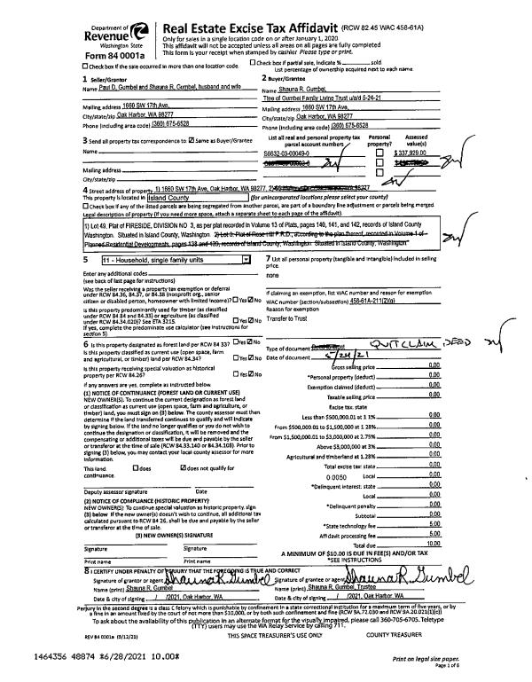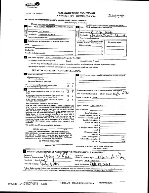 | 1 | 09/11/2023 | QCD | Quit Claim Deed | LUFTI PROPERTIES LLC | PNW RE VENTURES, LLC | | | $0.00 | 58074 | 4565065 |