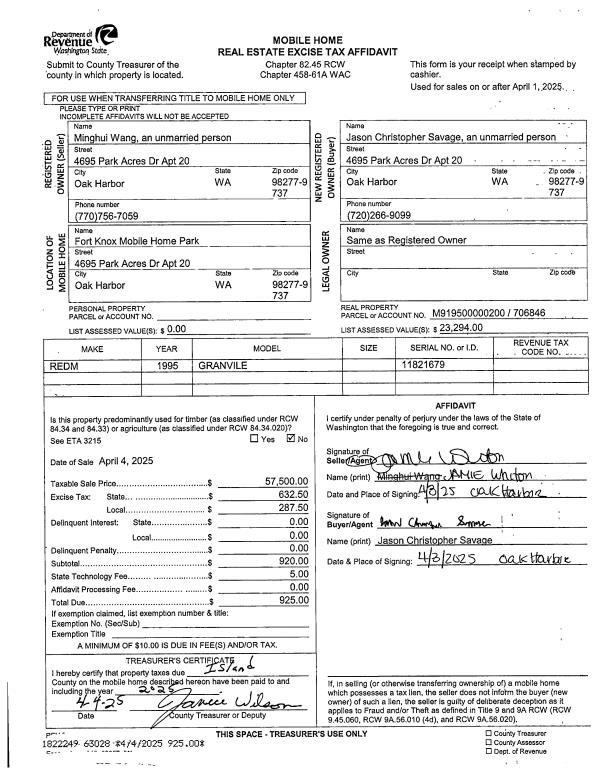 | Mailing Address: | 179 W TROXELL RD OAK HARBOR, WA 98277 | % Ownership: | 100.0000000000% |