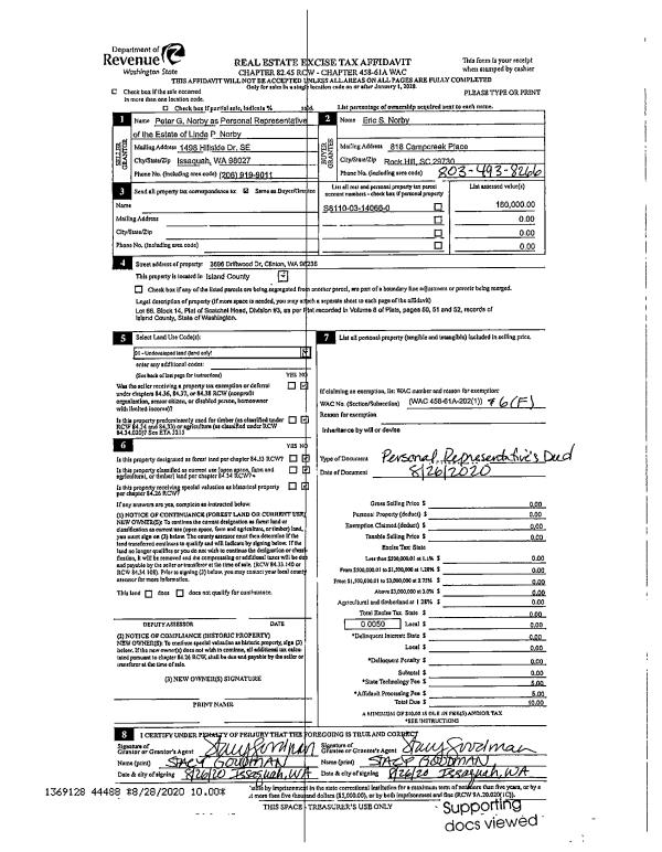 | Mailing Address: | THERESA D WILLIAMS-BREWER 3443 MARINE VIEW DR GREENBANK, WA 98253 | % Ownership: | 100.0000000000% |
