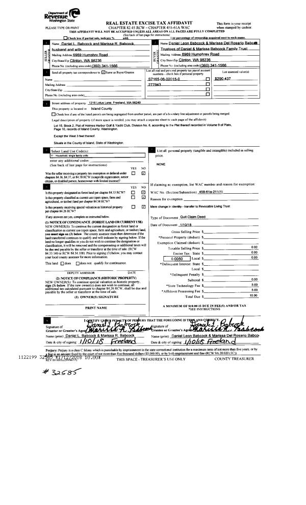 | Mailing Address: | 235 SW JUDSON DR OAK HARBOR, WA 98277-5800 | % Ownership: | 100.0000000000% |