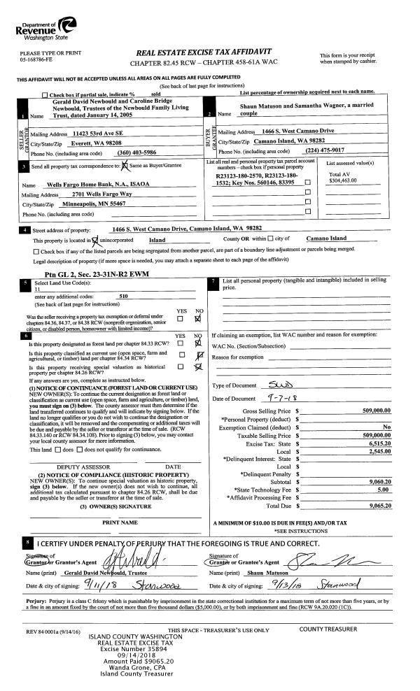 | Mailing Address: | TIFFANY M WASHA 338 SW JUDSON DR OAK HARBOR, WA 98277 | % Ownership: | 100.0000000000% |