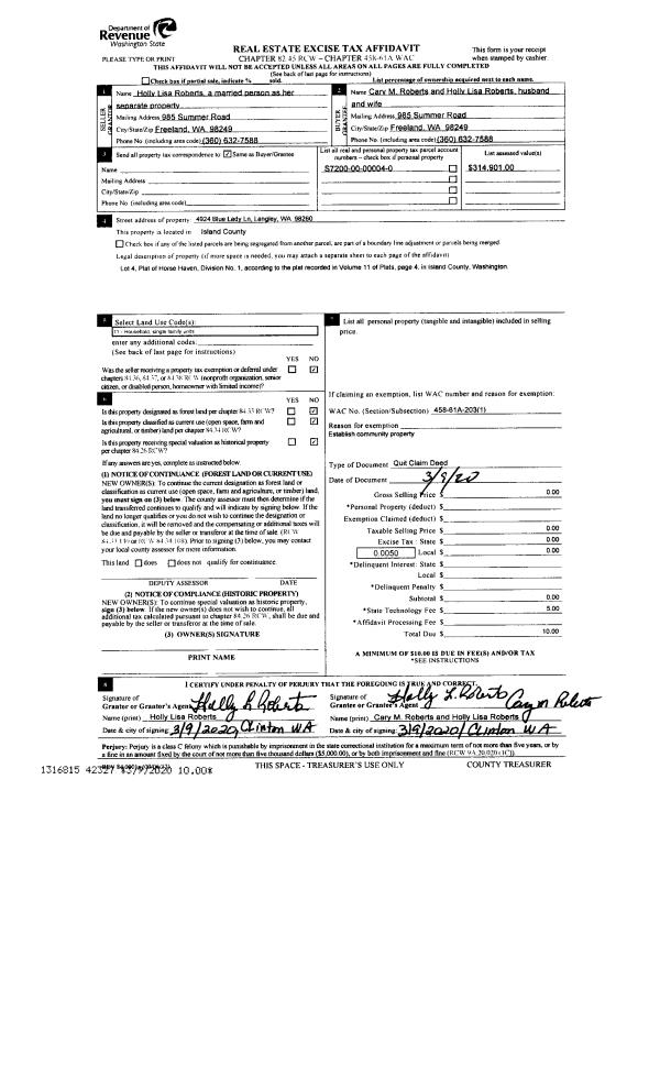| Tax Area: | 712 - APPRAISER-S Whid Schl Dist, outside Langley, improved, greater than 1 acre | Land Use Code | 11 |