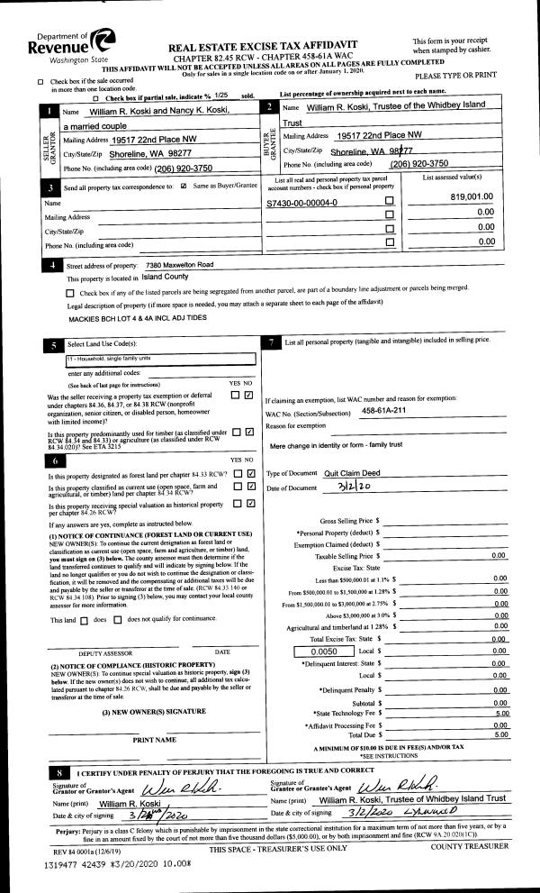 | Tax Area: | 712 - APPRAISER-S Whid Schl Dist, outside Langley, improved, greater than 1 acre |