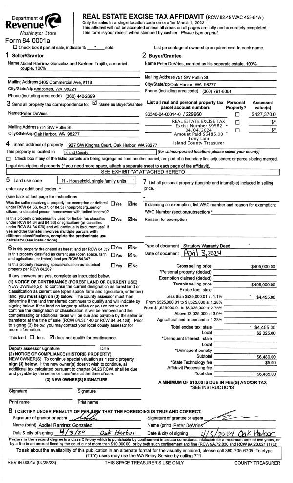 | Mailing Address: | 651 SE BAYSHORE DR B101 OAK HARBOR, WA 98277 | % Ownership: | 100.0000000000% |