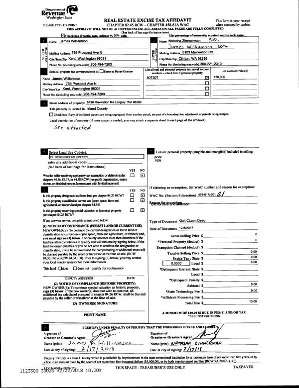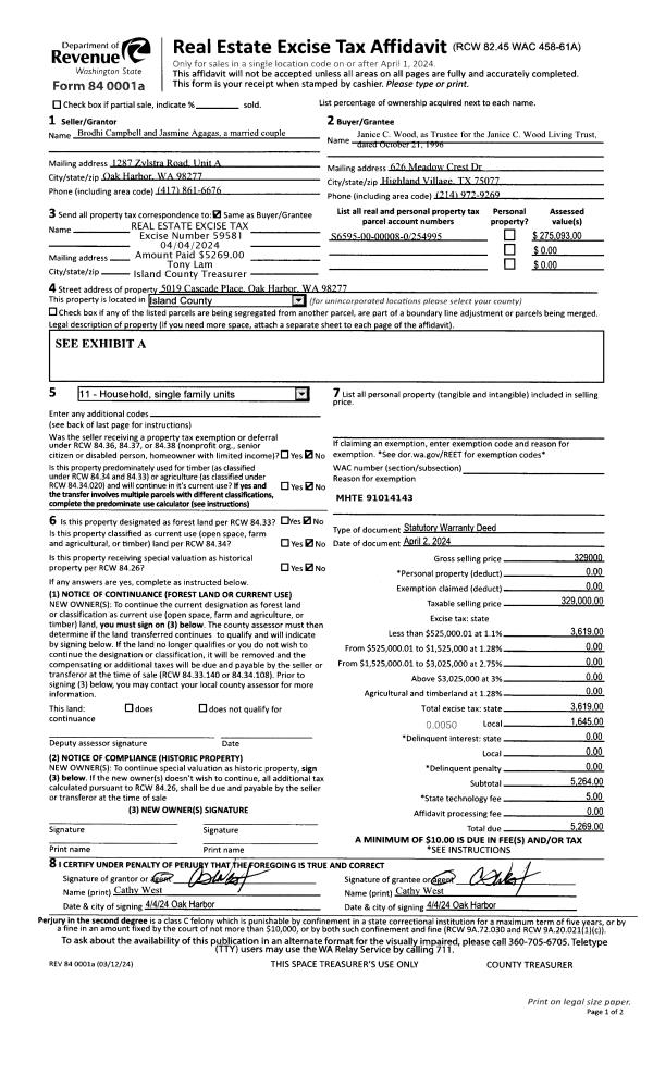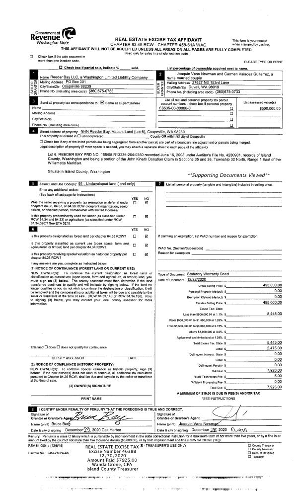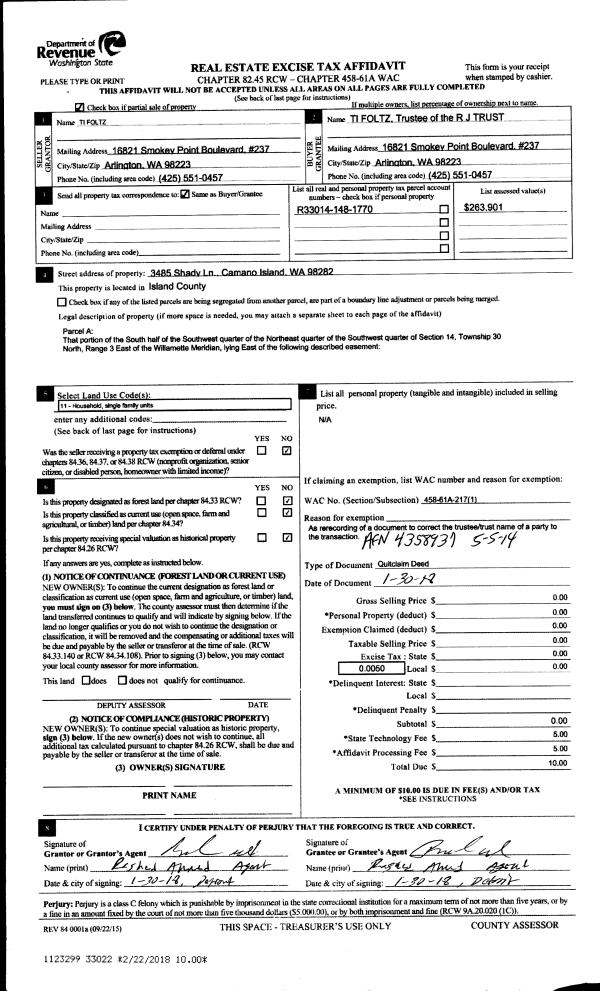 | Mailing Address: | JULIE GRANT MEYER RATCLIFF 651 SE BAYSHORE DR B303 OAK HARBOR, WA 98277 | % Ownership: | 100.0000000000% |