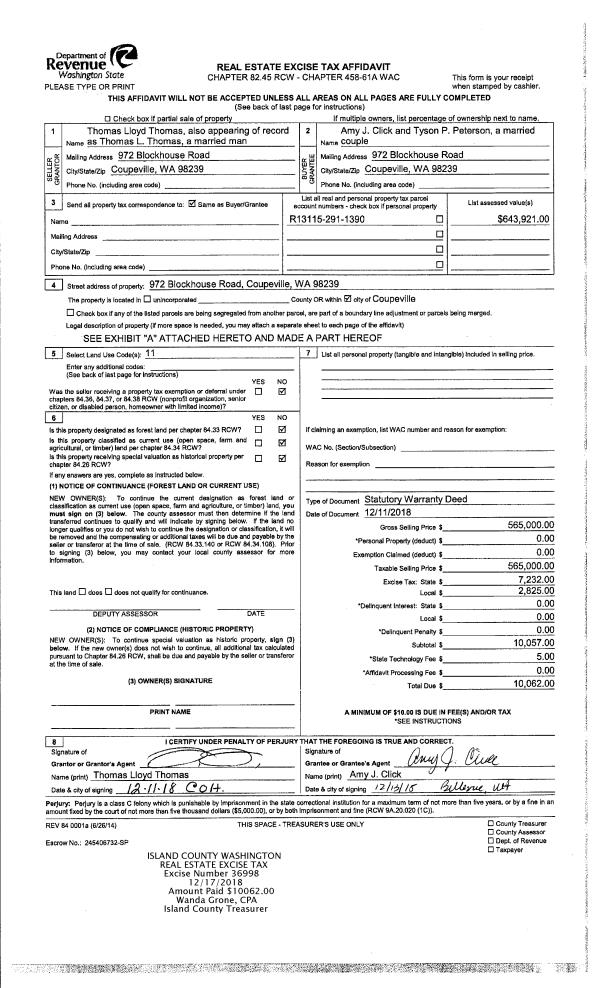 | Mailing Address: | 34938 SR 20 #65 OAK HARBOR, WA 98277 | % Ownership: | 100.0000000000% |