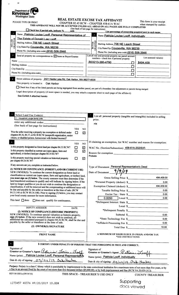 | 2 | 10/14/2009 | WD | Warranty Deed | LAIRD NORTON TYEE TRUST CO, TH | CARPENTER, ALAN E | | | $650,000.00 | 92496 | 4262031 |