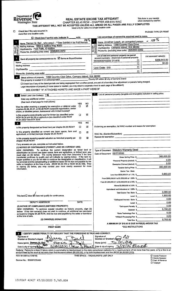 | Mailing Address: | 1377 REED PL FREELAND, WA 98249 | % Ownership: | 100.0000000000% |