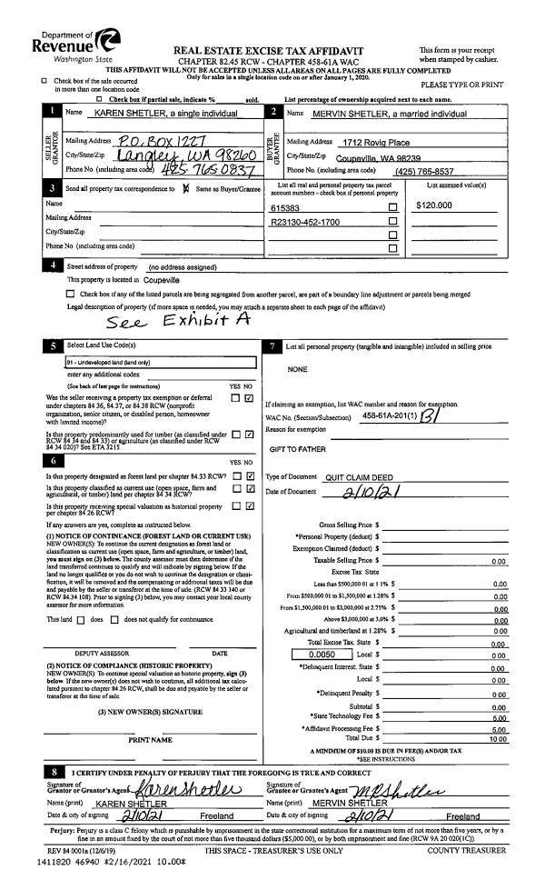 | Mailing Address: | 2967 ANDREASON RD LANGLEY, WA 98260 | % Ownership: | 100.0000000000% |