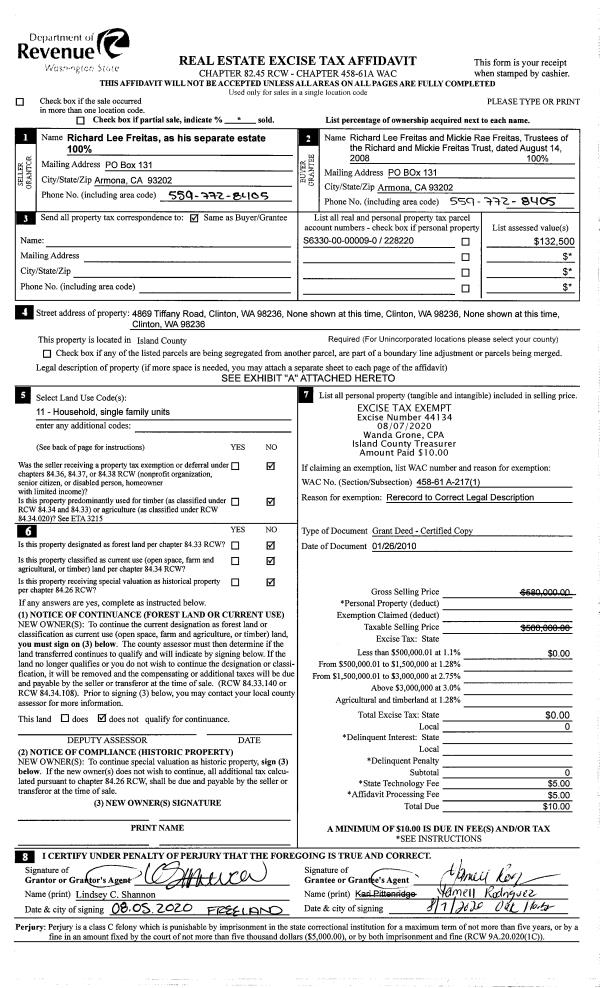 | Tax Area: | 712 - APPRAISER-S Whid Schl Dist, outside Langley, improved, greater than 1 acre | Land Use Code | 11 |
