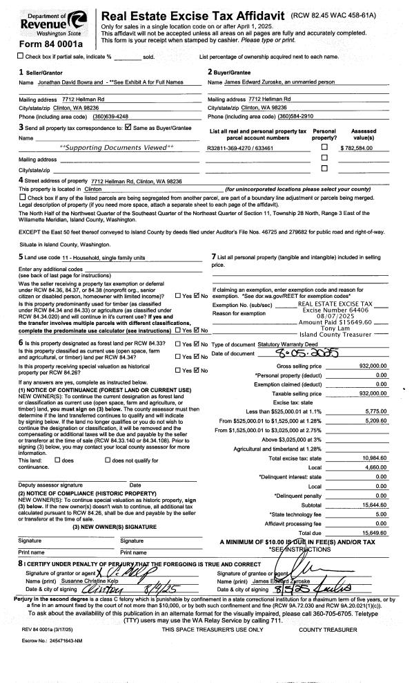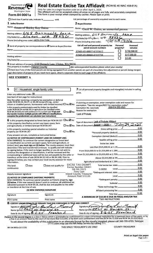 | Mailing Address: | 31080 SR 20 UNIT A106 OAK HARBOR, WA 98277 | % Ownership: | 100.0000000000% |