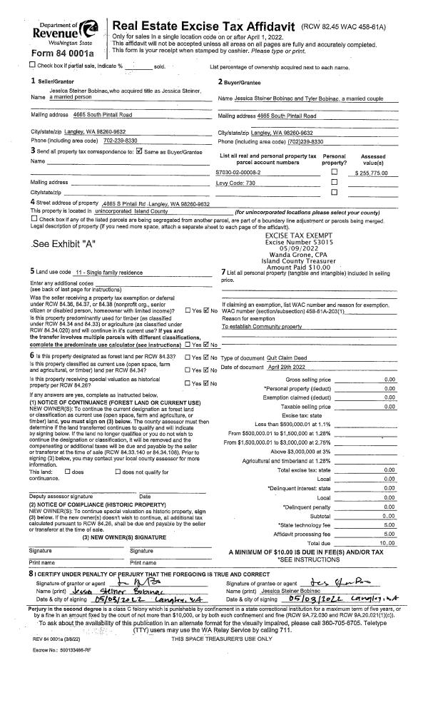 | Mailing Address: | 2310 SKYCREST DR COUPEVILLE, WA 98239 | % Ownership: | 100.0000000000% |