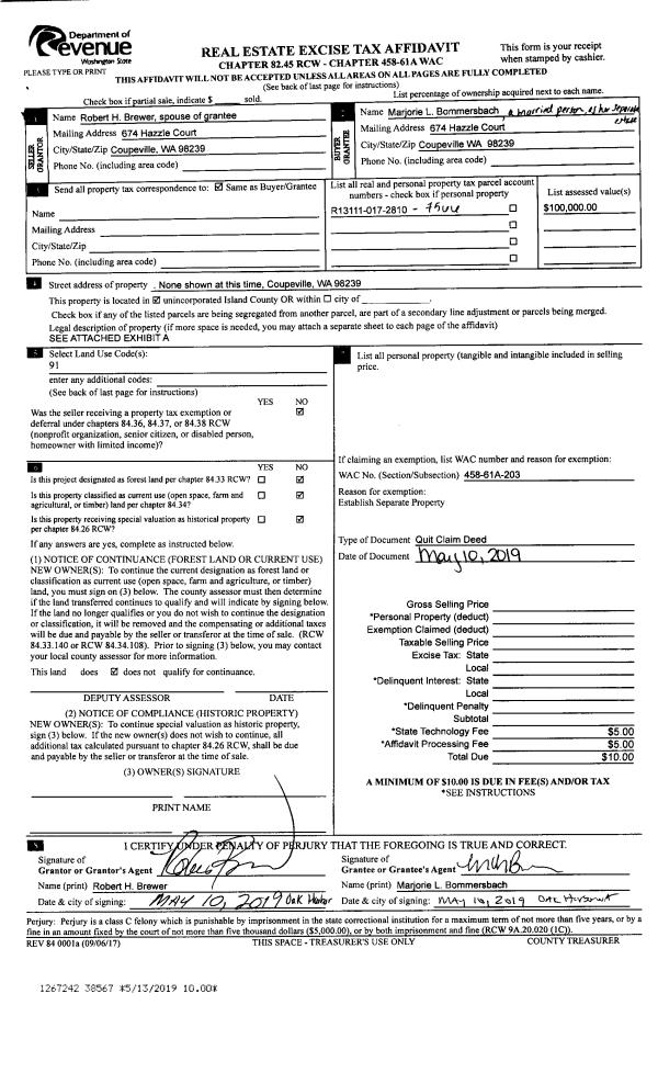 | Mailing Address: | HARROLD F. HOVEY 316 SE PIONEER WAY #576 OAK HARBOR, WA 98277 | % Ownership: | 100.0000000000% |