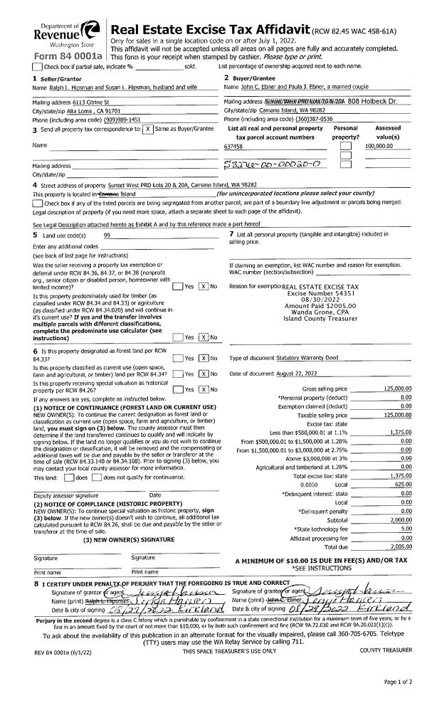 | Mailing Address: | 126 HOSANNA WAY CAMANO ISLAND, WA 98282 | % Ownership: | 100.0000000000% |