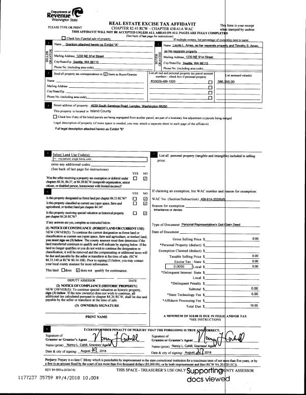 | Mailing Address: | 5 NE 9TH ST COUPEVILLE, WA 98239 | % Ownership: | 100.0000000000% |