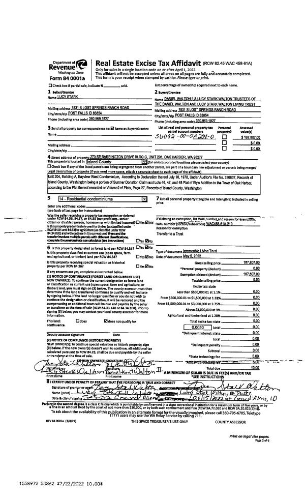 | Mailing Address: | TASHA WALKER MILLER 6936 FORMERLY LN CLINTON, WA 98236 | % Ownership: | 100.0000000000% |